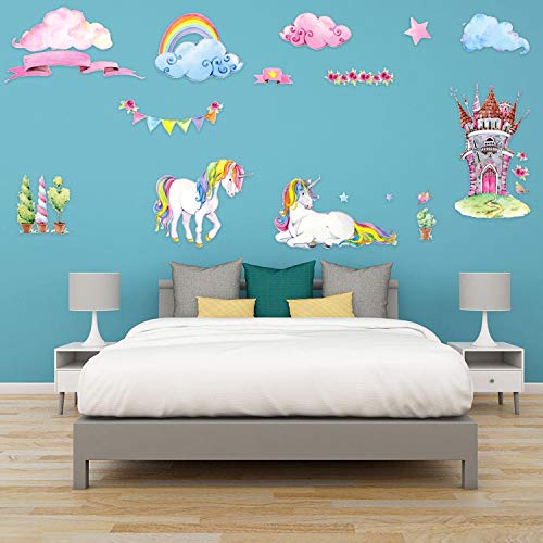 Adornlife 2 Sheet Unicorn Wall Stickers for Girls Bedroom Decoration Wall Decals Unicorn Rainbow Castle Wallpaper for…