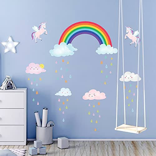 DECOWALL DA-2008 Rainbow and Unicorn Kids Wall Stickers Decals Peel and Stick Removable for Nursery Bedroom Living Room…
