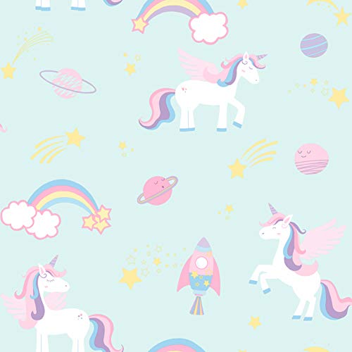 Holden Decor Unicorns Rockets and Rainbows Teal 90962 Wallpaper