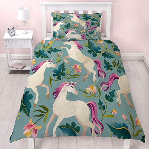MUSOLEI Unicorn Duvet Cover Sets Single Unicorn Quilt Cover Green Unicorn Bedspread for Children,Hidden Zipper with…