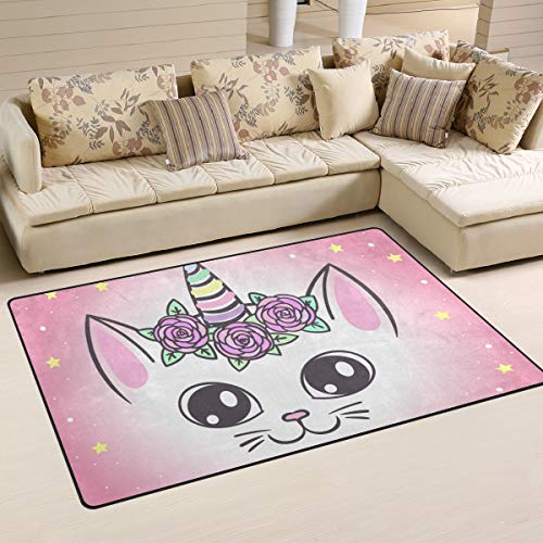 NaiiaN Personalized Area Rugs Floor Mat 31 x 20 Inch Happy Cat Unicorn Carpet Doormats Non-Slip for Living Room Home…