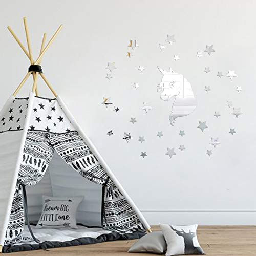 Unicorn Mirror Wall Stickers with 50 Stars Acrylic DIY Decal with Delicate Gifts Package for Bedroom, Home, Room…